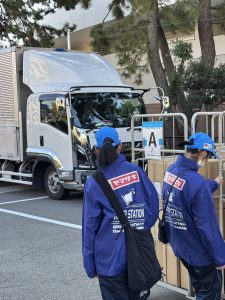 Our team shared traffic-restriction information beforehand and selected the most efficient routes. As a result, we arrived at each aid station exactly on time and unloaded the pallets safely using power-lift gates.